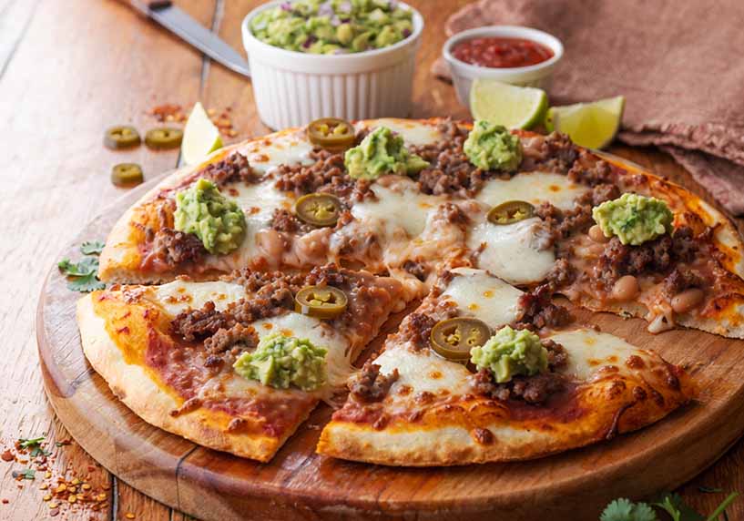 • The "Double Deck" Option: If you want a "fast food style" Mexican pizza, use two large flour tortillas instead of a pizza crust. Crisp the tortillas in a pan first, layer the beans and meat between them, then top the second tortilla with sauce and cheese before baking.